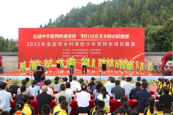 為進一步推進農村未成年人思想道德建設工作,鞏固提升鄉村學校少年宮質量水平,努力培養擔當民族復興大任的時代新人,9月22日上午,2023年龍巖市“弘揚中華優秀傳統文化 踐行社會主義核心價值觀”暨鄉村學校少年宮特色項目展演活動在龍巖市上杭縣蛟洋中心小學舉行。