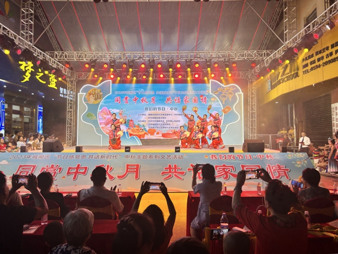 文明風9月27日訊 金秋送爽迎中秋,碩果飄香慶國慶。在中秋、國慶雙節來臨之際,為學習貫徹黨的二十大精神,踐行社會主義核心價值觀,營造祥和平安的節日氣氛,不斷增強文化自信,倡導文明新風尚。9月26日晚上,以“節日感黨恩 共話新時代”為主題,在華亭社區新時代文明實踐站舉辦“同賞中秋月,共話家國情——我們的節日·中秋”主題文藝晚會,活動融合了雙重節日元素,讓群眾感受中華優秀傳統文化的魅力。百余名轄區群眾歡聚一堂,一同慶祝中秋佳節的到來,晚會還通過在線網絡直播吸納上萬人次觀看,帶領廣大干部群眾共賞中秋團圓月,齊敘濃濃家國情。