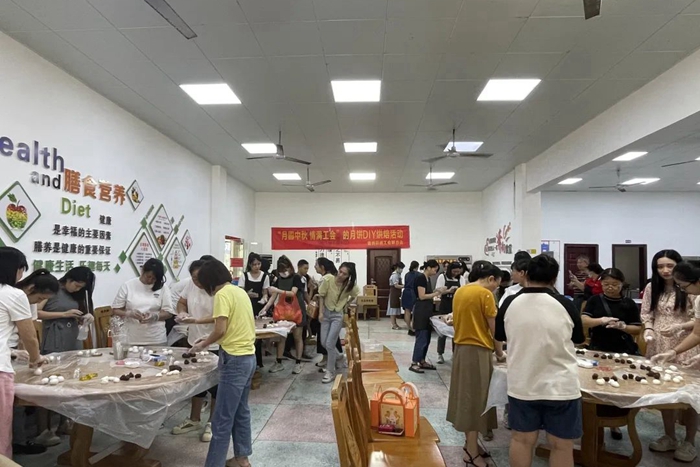 活動現場,烘焙老師為大家詳細講解月餅制作的知識和技巧,隨后大家便迫不及待地開始制作月餅,揉面團、搟面皮、包餡兒、壓模具……在一片歡聲笑語中,一個個精致的月餅逐漸成型。