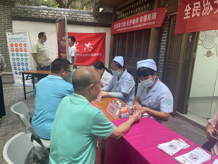 現場還設有社區衛生服務站的健康義診,醫務志愿者們熱情地為前來咨詢的居民提供免費測量血壓、中醫理療等服務,并根據其個人身體狀況仔細叮囑飲食、用藥等注意事項,同時,積極向社區居民宣傳健康醫學知識、醫療衛生惠民政策等內容。