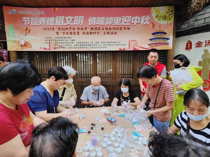 文明風9月28日訊 在中秋節來臨之際,為大力弘揚中華民族傳統文化,營造濃厚的節日氛圍,9月26日,由福州市鼓樓區委文明辦主辦,溫泉街道黨工委、溫泉街道平安辦、金湯社區黨委、金湯社區新時代文明實踐站等多家單位承辦的“節儉養德倡文明 情暖鄰里迎中秋”——“我們的節日?中秋”暨“節日感黨恩 共話新時代”主題活動在鼓樓區金湯社區長者食堂舉辦。