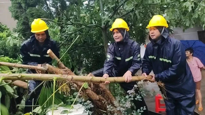 黃文勇(左二)帶隊奮戰在抗臺一線。涵江區委文明辦 供圖