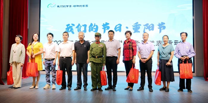 關愛慰問環節,相關領導及融城中學師生分別向“五老”同志代表、老年人代表致以崇高的敬意和美好的節日祝福。