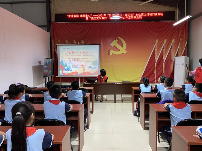 文明風10月23日訊 為弘揚中華民族尊老愛老的傳統美德,培養學生的感恩意識,傳承中華民族優秀文化,進一步加強未成年人思想道德建設,值此重陽節來臨之際,10月21日,“愛滿重陽 孝潤童心”——2023年“我們的節日·重陽”倉山區主場城門鎮專場暨“強國復興有我”城門鎮鄉村少年宮系列活動在城門鎮新時代文明實踐所舉辦。