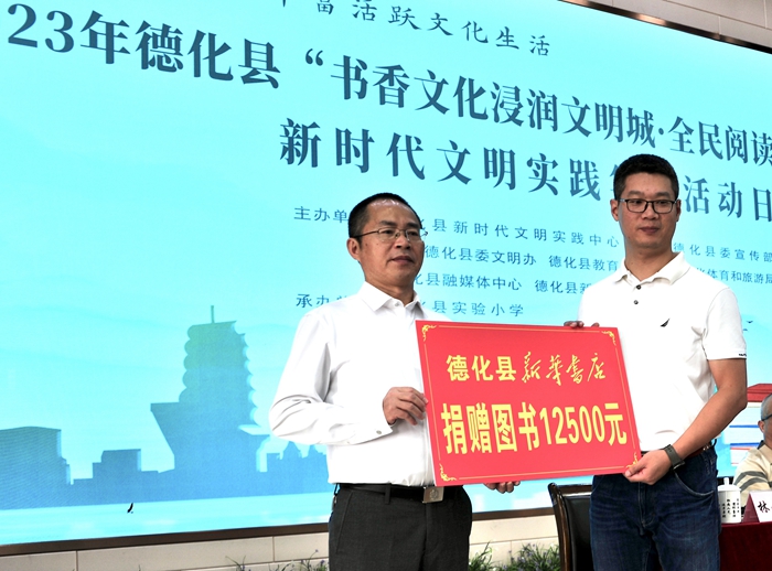 活動(dòng)中,德化縣新華書店向德化縣實(shí)驗(yàn)小學(xué)捐贈(zèng)圖書300冊(cè),中共德化縣委宣傳部、縣委文明辦向?qū)W校捐助“書香文化浸潤(rùn)文明城”全民閱讀示范校園活動(dòng)經(jīng)費(fèi)10萬(wàn)元。愛心捐贈(zèng)以“書”為媒、以“讀”載道,傳遞閱讀文化,潤(rùn)澤師生心靈,營(yíng)造了良好的文明共建、文明共享濃厚氛圍,煥活了新時(shí)代文明實(shí)踐陣地潛能,有力推動(dòng)了文明實(shí)踐走深走實(shí)發(fā)展。