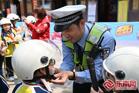 來自泉州市公安局交警支隊鯉城大隊交警王唯佳提交的作品是《一人一盔,文明守規(guī)》,這是她利用進校園做活動間隙拍攝的,照片中她的同事正在幫一名小朋友戴頭盔,告訴他們騎電動車戴頭盔的重要性。“希望廣大市民朋友們能做‘一盔一帶’文明交通習慣的踐行者,騎電動車、摩托車時,主動佩戴安全頭盔。”王唯佳告訴記者。