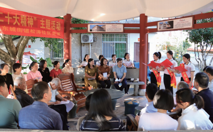 龍巖市新羅區東城街道松濤社區新時代文明實踐站開展“踔厲奮發向未來 學習黨的二十大精神”主題活動,以板凳課堂形式進行宣講。