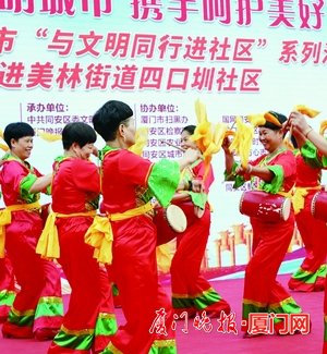 “當前廈門市正在爭創第幾屆全國文明城市?”“您身邊的志愿服務活動氛圍是否濃厚?”現場,一輪又一輪的創建全國文明城市知識互動問答穿插在文藝表演中,掀起了一次又一次活動熱潮。在一問一答中,居民們不僅獲得了精美禮品,還學到了文明知識,提高了他們對創建全國文明城市的知曉率、支持率、參與率和滿意率。