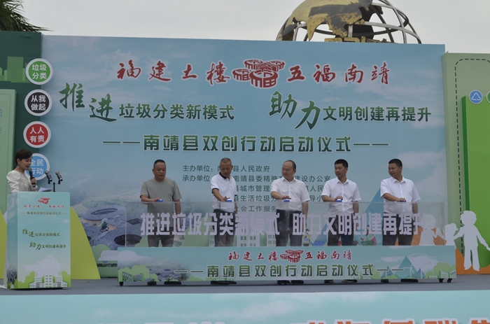文明風(fēng)11月1日訊 為進一步加強鞏固廣大居民對生活垃圾分類的了解,倡導(dǎo)綠色、低碳、環(huán)保的生活方式,助力文明城市創(chuàng)建,近日,南靖縣在江濱公園廣場舉行“推進垃圾分類新模式,助力文明創(chuàng)建再提升”雙創(chuàng)行動啟動儀式。南靖縣副縣長吳東照及各相關(guān)部門人員參加啟動儀式。