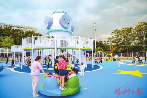 據福州城投集團所屬市城鄉建總項目負責人吳喬楓介紹,10月5日建成開放的晉安湖星際兒童樂園有各類兒童體驗設施16項,是第一批國家兒童友好城市建設項目,由中央投資支持改造。“開放以后,除了附近居民,不少周邊縣市的群眾都帶著孩子,專程開車來玩,至今熱度不減。”他表示,目前,全市共有4個公園游樂及研學配套設施適兒化改造項目獲中央預算內投資1600萬元,“加上晉安湖星際兒童樂園項目及今年六一節開放的光明港公園兒童游樂空間,已有3個完工。”