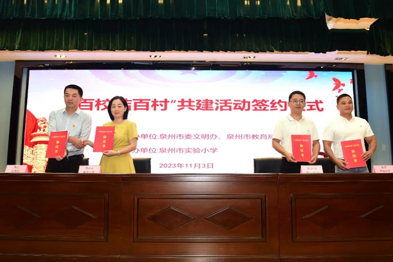 泉州第一中學與豐澤區蟳埔社區、晉光小學與洛江區馬甲鎮永安村現場簽訂“百校結百村”協議書。東南網記者 林婕 攝