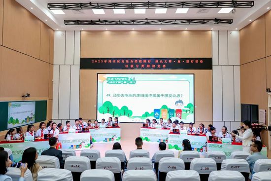 在垃圾分類宣傳講座上,宣講員從垃圾分類的意義、四色垃圾桶的區別、如何正確投放垃圾等方面,為現場師生講解相關知識,同時穿插“你問我答”環節,點燃在場學生的參與熱情。講座后,來自同安區第一實驗小學、第三實驗小學等6所小學的學生們分別組成參賽隊伍,共同參與垃圾分類知識競賽。