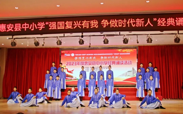 日前,2023年度惠安縣中小學“強國復興有我, 爭做時代新人”經典誦讀活動舉行,來自惠安全縣14支城市學校少年宮朗誦隊通過經典詩文、近當代名篇佳作的誦讀,給惠安縣人民展演了一場高水平的經典誦讀盛宴,共同歌頌祖國的繁榮與昌盛,共同表達新時代好少年對黨最崇高的敬意!