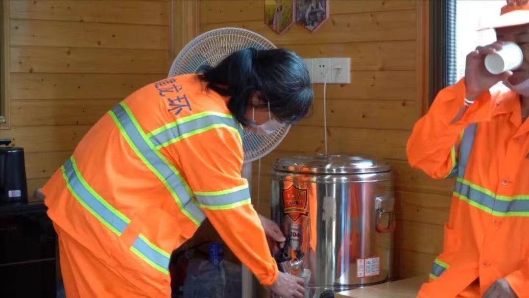“愛(ài)心驛站”里接熱水的環(huán)衛(wèi)工人