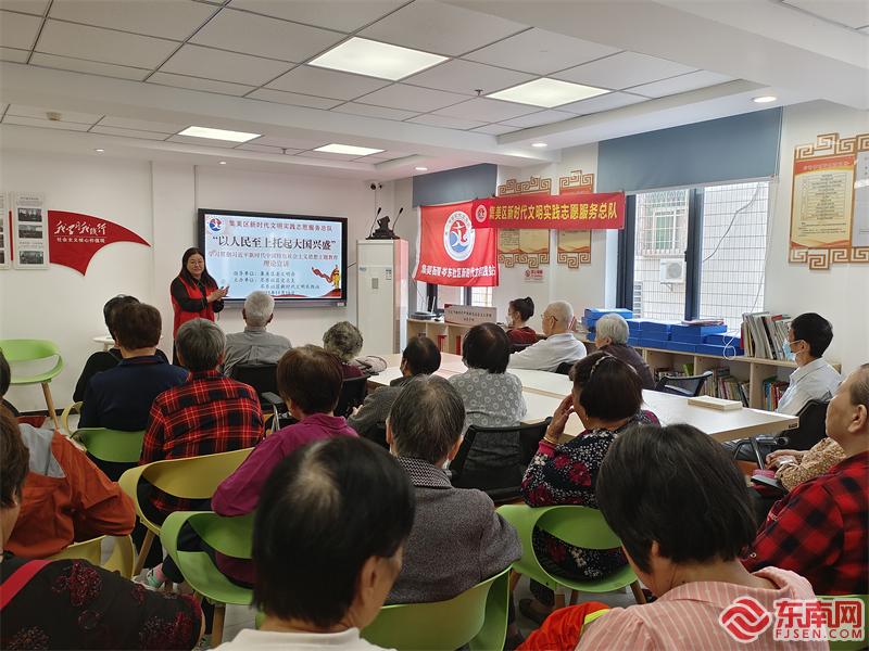 深學(xué)細(xì)悟新思想,凝心聚力譜新篇。11月15日,寧海社區(qū)新時(shí)代文明實(shí)踐站邀請(qǐng)廈門市婦女聯(lián)合會(huì)講師王勤芳開展《新時(shí)代 新思想 新征程——學(xué)習(xí)貫徹習(xí)近平新時(shí)代中國特色社會(huì)主義思想主題教育》理論宣講課程,通過線上直播、線下宣講相結(jié)合形式拓寬學(xué)習(xí)受眾面,并以“跨時(shí)空的對(duì)話”小視頻,引發(fā)黨員群眾情感共鳴,增進(jìn)思想認(rèn)同。