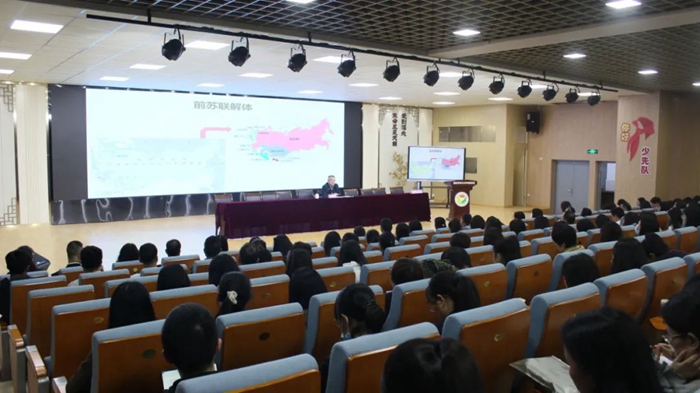 葉鋒武官根據自己多年從事軍事外交工作的體會和經驗感悟,通過透徹分析鮮活案例,同教職員工分享外交故事和外交知識,展現新時代軍人的使命擔當,表達濃厚的愛黨愛國情懷。