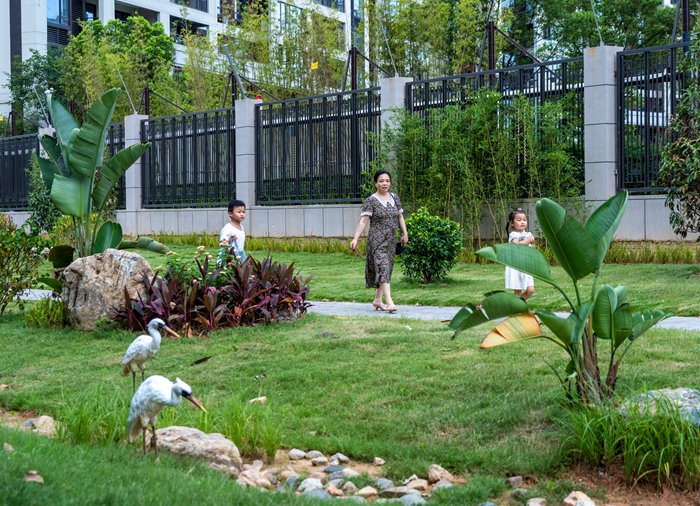 位于龍文區石倉南路君領首府旁的口袋公園的綠道布置為市民出行增添了不少情趣。張旭 攝