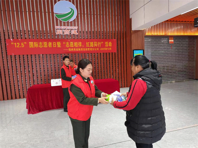 12月4日下午,福建高速集團龍巖管理分公司組織龍巖北、漳平片區“紅路”志愿者到和平服務區、漳平征管所收費廣場等地開展“12·5”國際志愿者日暨“志愿相伴,紅路同行”活動。在和平服務區,“紅路”志愿者們通過設立志愿服務臺,提供免費藥箱、工具包、免費茶水等服務為停留服務區休息的司乘人員提供便利條件,同時還對服務區的環境衛生進行了打掃清理。(龍巖市委文明辦)