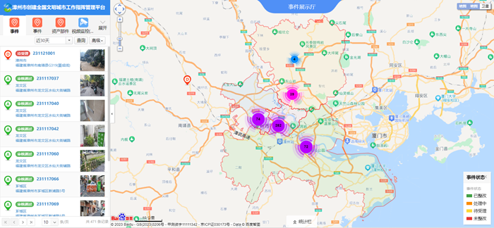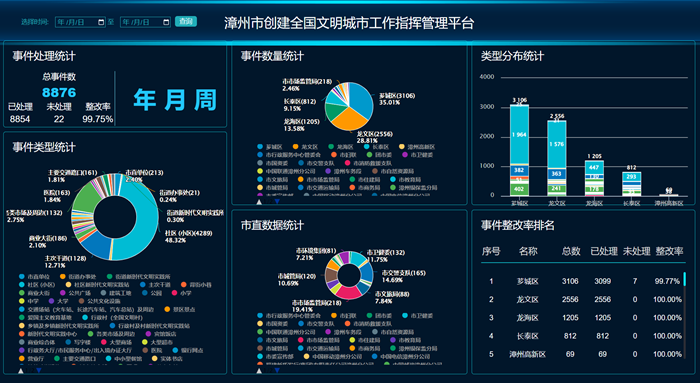 漳州市建立健全科技賦能創建機制,推進創建全國文明城市工作指揮管理平臺建設,打造形成“1+8”子系統架構