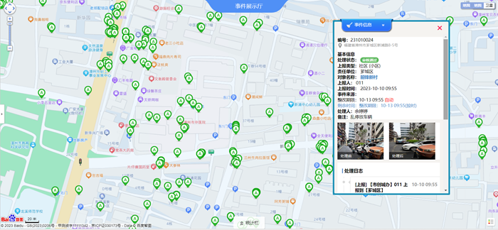 建設綜合展示子系統,通過GIS電子地圖,實時查看問題的處理狀態,根據不同顏色區分問題狀態