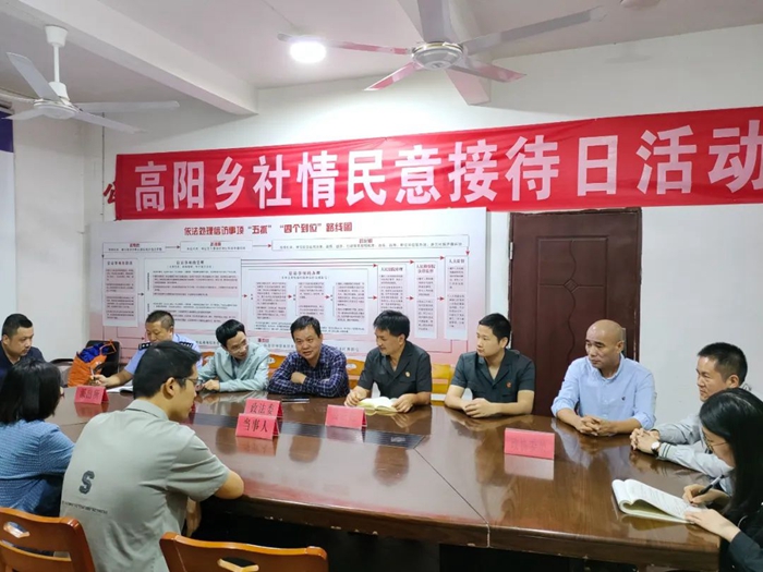 “小事不出村,大事不出鄉,群眾煩心事,有理你來評”20個字靜靜地掛在“李默評理室”墻上。近年來,高陽鄉大力弘揚“四下基層”優良作風,在社會基層堅持和發展新時代“楓橋經驗”,挖掘傳統文化的孝廉元素,將“孝廉”融入法治建設,通過“領導下訪+司法調解+人民調解”的方式,探索構建以黨的領導為核心,上下一體、多元共治、高效運轉的基層社會治理模式,用心用情用力化解矛盾在基層,以基層小平安筑牢社會大平安。今年以來,高陽鄉信訪案件下降34.61%,信訪量及矛盾糾紛數實現“雙下降”。
