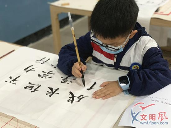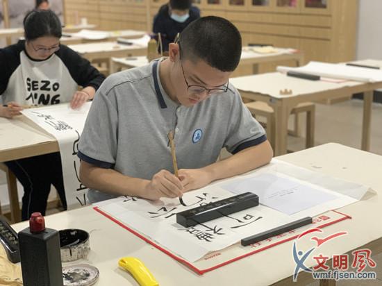 青少年認真地將一句句家風古訓書寫在宣紙上(翔安區委文明辦供圖)