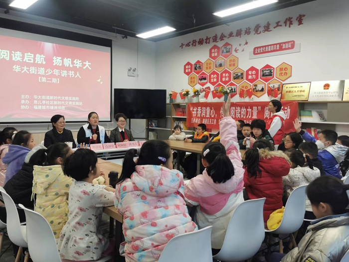 文明風(fēng)12月19日訊 全民閱讀蔚然成風(fēng),“最美窗口”書香充盈。12月17日,由鼓樓區(qū)華大街道新時代文明實踐所、思兒亭社區(qū)新時代文明實踐站、思兒亭社區(qū)關(guān)工委、福建城市綠洲書店聯(lián)合舉辦的“閱讀啟航 揚帆華大”——“少年講書人”閱讀活動在恒力博納黨群服務(wù)中心舉辦。