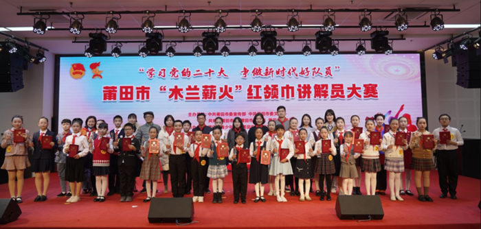 文明風(fēng)12月26日訊 為深入開展學(xué)習(xí)貫徹習(xí)近平新時代中國特色社會主義思想主題教育,引導(dǎo)少先隊員聽黨話、跟黨走,培養(yǎng)擔(dān)當(dāng)民族復(fù)興大任的時代新人,12月23日,由莆田市委宣傳部、莆田市委文明辦、共青團(tuán)莆田市委、莆田市教育局、莆田市少工委主辦,莆田市青少年宮、莆田市青少年宮少工委承辦的“學(xué)習(xí)黨的二十大 爭做時代好隊員”——莆田市“木蘭薪火”紅領(lǐng)巾講解員大賽決賽在莆田市青少年宮舉行,來自莆田各個縣區(qū)的32名紅領(lǐng)巾講解員參加了本次決賽。