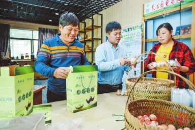 閩侯鴻尾鄉養心生態園內,黃新榮一家正在打包雞蛋。(福州日報記者 石美祥攝)