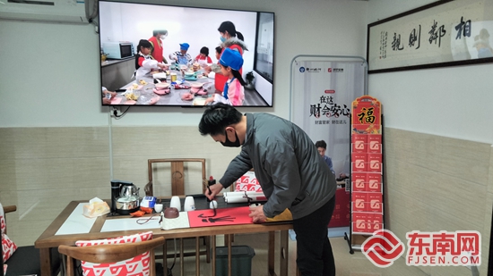 暖意濃濃的“福”、蒼勁有力的“龍騰虎躍”、寓意吉祥的“平安喜樂”……離春節(jié)還有一個(gè)多月,來自泉州銀行的金融志愿者一有空便到鯉城區(qū)海濱街道金山社區(qū)“黨建+”鄰里中心,用毛筆書寫祝福,提前為社區(qū)居民準(zhǔn)備新春禮物。