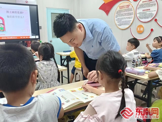 金融志愿者化身厝邊教師,幫孩子們輔導(dǎo)功課。蘇適 供圖