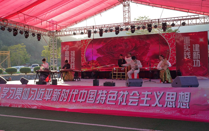 活動在船場集星幼兒園帶來的《中華萌獅》舞蹈中拉開了序幕。曲藝《學習宣傳黨的二十大精神》、獨唱《祖國我的最愛》、三人舞《傣源》、情景劇《嚴守廉潔紀律 護航“鄉村振興”》等精彩紛呈的節目輪番上演;長嘴壺表演、男女聲二重唱《客家山歌》、宣講《鄉村振興 青年先行》、童聲表演唱《祖國吉祥》、獨舞《燈火里的中國》、民樂重奏《盛世國樂》將演出推向高潮,贏得場下觀眾陣陣掌聲。最后,在男女聲二重唱《在希望的田野上》悠揚的歌聲中,演出落下了帷幕。