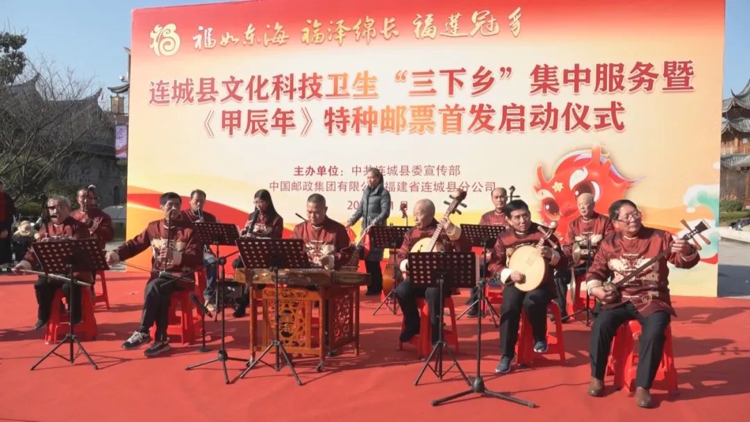 文明風(fēng)1月10日訊 近日,“福如東海 福澤綿長(zhǎng) 福蓮冠豸”連城縣文化科技衛(wèi)生“三下鄉(xiāng)”集中服務(wù)暨《甲辰年》特種郵票首發(fā)活動(dòng)在連城縣蓮峰鎮(zhèn)四角井歷史文化街區(qū)舉行。連城縣委宣傳部、中國(guó)郵政集團(tuán)有限公司福建省連城縣分公司等20余家單位參加此次活動(dòng)。連城縣委常委、宣傳部部長(zhǎng)陳祺出席活動(dòng)并致辭。