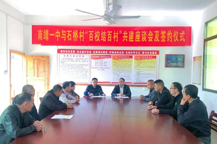 文明風1月15日訊 為深入貫徹習近平新時代中國特色社會主義思想,學習領會和貫徹習近平總書記在北京育英學校考察調研時的重要講話精神,近日,南靖一中與南靖縣書洋鎮石橋村攜手開展共建活動。南靖縣文明辦、書洋鎮、南靖一中等單位相關人員參加活動。