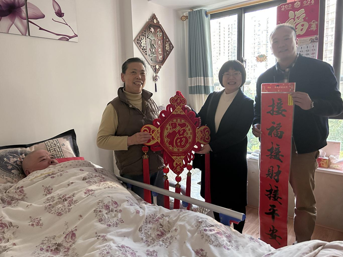 省委文明辦慰問組慰問了第八屆福建省孝老愛親道德模范翁秀菊、助人為樂道德模范邱菊珍,為她們送上禮遇幫扶慰問金、道德模范獎(jiǎng)?wù)隆s譽(yù)證書、紀(jì)念品、春聯(lián)等“福”文化文創(chuàng)產(chǎn)品,共迎新春佳節(jié)。在翁秀菊家,慰問組詳細(xì)了解翁秀菊的家庭狀況和生活情況,翁秀菊日復(fù)一日侍候年邁的婆婆,陪伴殘疾的丈夫,照顧患有精神疾病的小叔子,養(yǎng)育孤獨(dú)癥的兒子,瘦弱的她為一家六口撐起了一片天,孝老愛親故事感人至深,慰問組送上幫扶金,祝愿她的家庭生活順利。在三元區(qū)道德模范身邊好人聯(lián)誼會展館,慰問組關(guān)心慰問邱菊珍,并鼓勵(lì)她繼續(xù)發(fā)揮道德模范的示范引領(lǐng)作用,組織開展結(jié)對幫扶孤寡老人、護(hù)河行動、驛站便民服務(wù)等志愿服務(wù)活動,帶動身邊的更多人崇德向善。