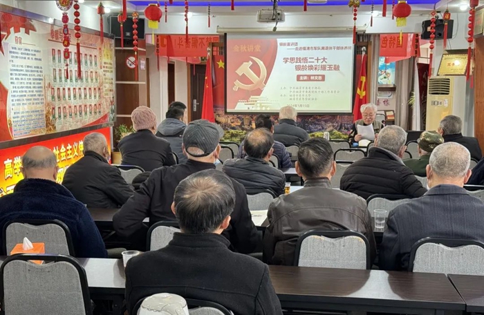 文明風1月18日訊 為推動學習貫徹習近平新時代中國特色社會主義思想走深走實,充分發揮“銀發人才”的優勢作用,創新基層理論宣講模式,讓黨的創新理論“飛入尋常百姓家”,1月15日,省“黨的創新理論離退休干部宣傳小分隊”——福清市銀齡宣講團走進市軍隊離退休干部休養所,為軍休老干部帶來一場別開生面的宣講。