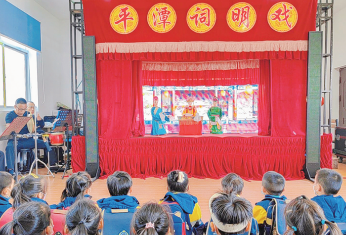 幼兒在觀看詞明戲表演。