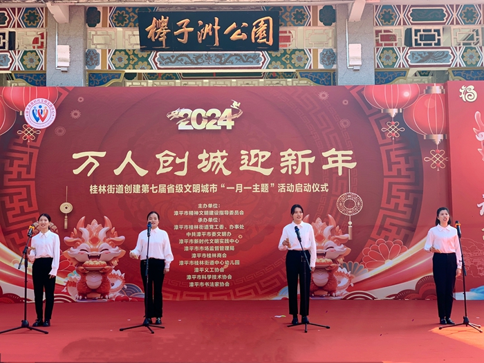 在啟動儀式上,桂林街道干部、社區黨組織書記及轄區學校自編自導,用優美的歌聲、舞姿、朗誦等群眾喜聞樂見的形式,為大家奉獻了一場豐富多彩的文化潤興盛宴。喜慶洋洋的開場舞《說唱中國紅》,把濃濃的年味傳遞給大家,飽含深情的配樂詩朗誦《文明在心 創城有我》、倡導勤儉節約的舞蹈《聽我說》、堅定初心為人民的舞蹈《不忘初心》和朗朗上口的快板《創城三字經》等節目連番登場,現場氣氛熱烈,引得群眾發出陣陣熱烈的掌聲,將現場的氛圍一次次推向高潮。