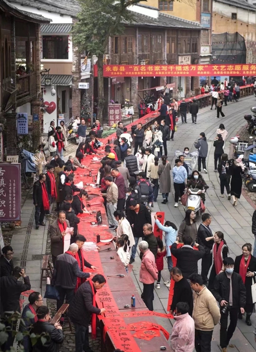 永春在五里古街開展“百名書家寫千福送萬家”活動。永春縣文聯(lián) 供圖