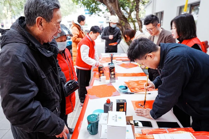 2月2日上午,來自國網福州供電公司書畫協會和團委的志愿者們揮毫潑墨,書寫寓意吉祥的春聯,繪畫特色龍年漫畫,贈予前來參與活動的市民。自古英雄出少年,來自福州市十九中的“低碳少年”們也紛紛展示書畫“絕活”,在送祝福的同時向群眾積極宣傳低碳環保科普知識。這些春聯不僅承載著對新年的美好祝愿,也展現了中國傳統書法藝術的魅力。群眾收到一幅幅精美的書法,連連稱贊,一位聾啞群眾還用自己的方式表達了對志愿者們的感謝,他用手機點贊“黨真好,為我們服務!”