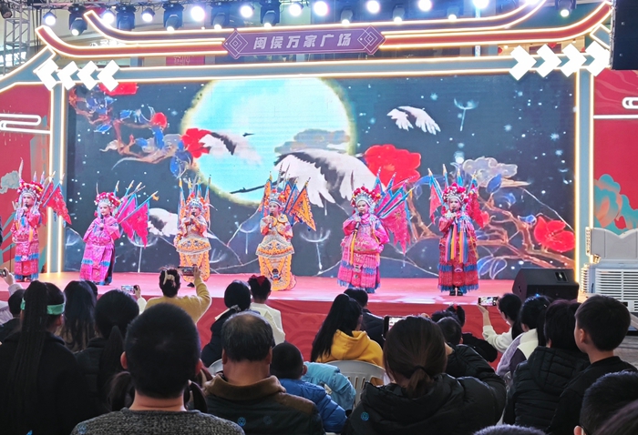 文明風2月4日訊 新春佳節將至,為傳承中華優秀傳統文化,豐富居民的精神文化生活,推動志愿服務發展,2月3日,由閩侯縣新時代文明實踐中心、中共閩侯縣委文明辦、閩侯縣樂志社會工作服務中心、閩侯縣萬家志愿服務驛站、閩侯縣萬家廣場共同舉辦的“我在新時代文明實踐中心迎新春”主題文明實踐活動在萬家廣場開展。來自棒棒糖主持、閩侯縣民間文藝家協會藝術團、首邑青少年志愿服務中心、甘蔗楓悅旗袍隊、炫彩夕陽舞隊、大佳社區柔力球隊的近百名文藝志愿者為現場觀眾奉上一場視聽盛宴。