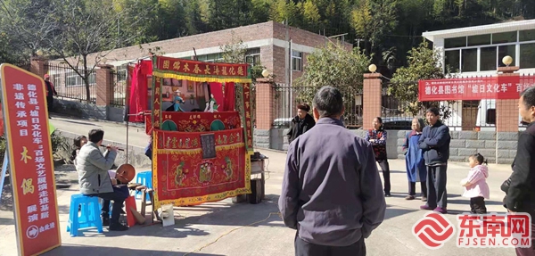 德化縣墟日文化車為村民表演布袋木偶戲。德化縣委文明辦 供圖