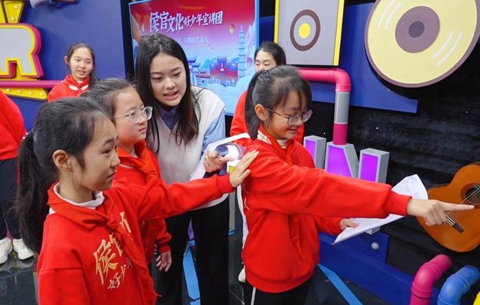 走進廣電大樓,好少年們還通過參觀廣電展廳、電視摳像、進棚錄音等體驗活動,開啟了“侯官小主播”模式。