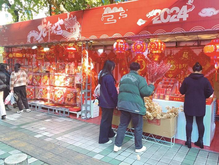 “春聯、窗花、‘福’字、中國結都是過年必不可少的東西,既是對傳統文化的傳承,又寄托了大家的美好愿望。”今年是盧先生的本命年,他特意購買了許多龍年飾品,寓意著來年好運連連。
