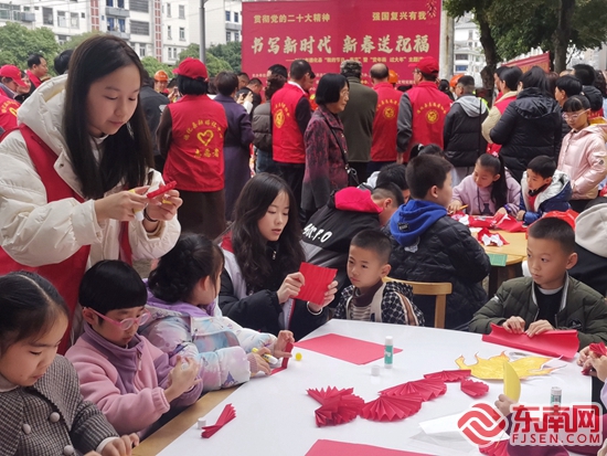 除了年畫展示,現場還有寫春聯、趣味套圈、剪刻紙迎新春、現場慰問、愛心理療等活動,現場氛圍其樂融融。(德化文明網)