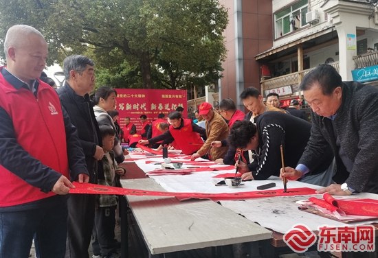書法志愿者們為市民寫春聯送福。德化縣委文明辦 供圖