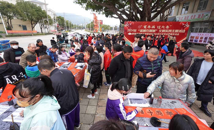 文明風2月8日訊 “媽媽,你看這些五顏六色的年畫真好看!”“我想要那個福字”“快一點,這里還有節(jié)目看”……2月5日,正值寒假,“賞年畫 過大年”——2024年“溫暖在融城”文明實踐主題活動暨陽下街道溪頭村鄉(xiāng)村少年宮志愿服務活動現場氣氛熱烈,稚嫩又歡快的聲音此起彼伏,不少市民帶著孩子一起感受年味。