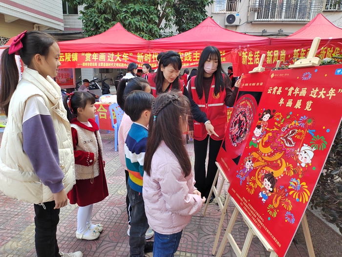 在年畫展覽區,一幅幅精美的年畫吸引著孩子們的目光,講解員們從畫面入手,介紹畫面內容并引申出春節的由來及春節的民俗風俗,引導孩子們感受地方人文風情、感悟傳統文化內涵,轄區群眾連連稱贊,現場氛圍喜氣祥和。