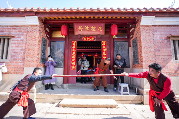 游客觀賞戚家軍鴛鴦陣法表演 黃健 攝