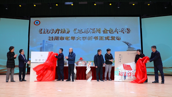 文明風3月1日訊 2月29日,全國首本公開發行的老年志愿服務培訓教材《志愿福州 金色年華》、福州市首本老年大學統編教材《按摩療法》新書發布會在榕舉行。十三屆福州市政協主席、福州市老年大學校長何靜彥,常務副校長陳建平、林賢,市政協原二級巡視員楊凡,市委組織部副部長、老干部局局長周龍敏,市委宣傳部副部長、文明辦主任林家樞,市教育局及校領導王衛旗、陳學光、王玉琴、鮑閩、嚴星、高珠英、陳學敏等出席。